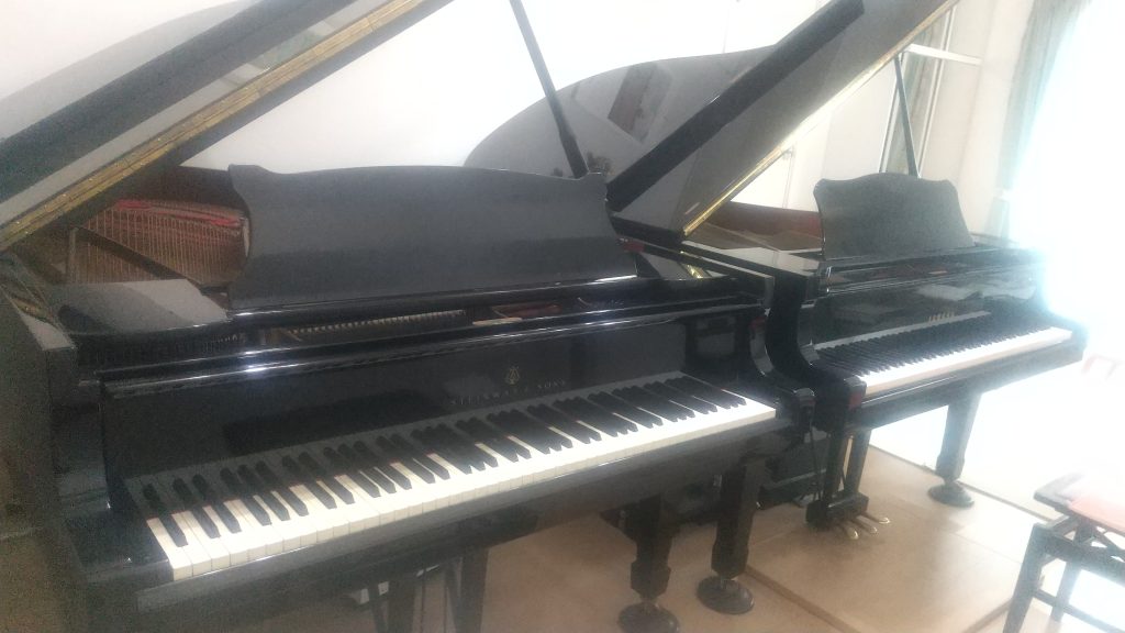 良いお耳を育てるために生の音にこだわり、ピアノのレッスンはグランドピアノ2台でレッスンしています。